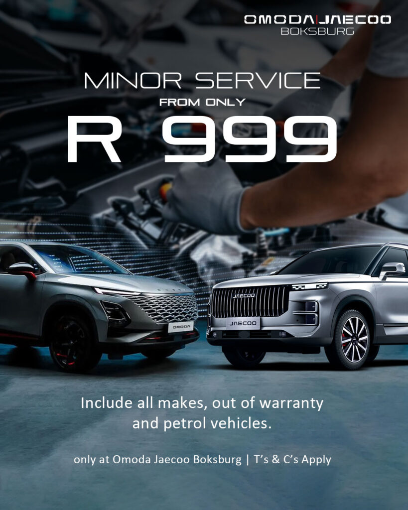 No responsibility is accepted for any errors and omissions. The material on this website is for informational purposes only. Chery International (Pty) Ltd, t/a OMODA South Africa or JAECOO South Africa (“OMODA”) or (“JAECOO”), reserves the right to change the information referred to on this site at any time without prior notice. Consult your dealer for the latest information and availability. OMODA or JAECOO reserves the right to alter any details of specifications without notice. The information contained in this website is an overview intended for awareness purposes only. Images may show specifications not available in South Africa images may be shown for illustrative purposes only. Please check model availability and full specification details with your OMODA or JAECOO dealer. Neither OMODA JAECOO nor the dealer network can accept contractual responsibility for your reliance on the information contained within this site. Terms and Conditions apply. Finance is subject to approval. OMODA JAECOO Finance, a product of Absa.